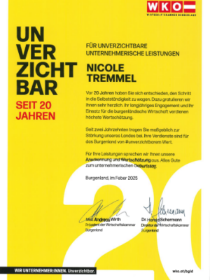 20 Jahre Unternehmertum – das ist eine Leistung, die Respekt verdient! Nicole Tremmel, Geschäftsführerin von PLATIVIO modern training, wurde von der Wirtschaftskammer Österreich (WKO) für zwei Jahrzehnte erfolgreiche Selbstständigkeit ausgezeichnet. Eine beeindruckende Reise voller Herausforderungen, Entwicklungen und Erfolge. Im Gespräch erzählt sie von ihren Anfängen, ihrer Motivation – und ihrer Vision für die Zukunft.